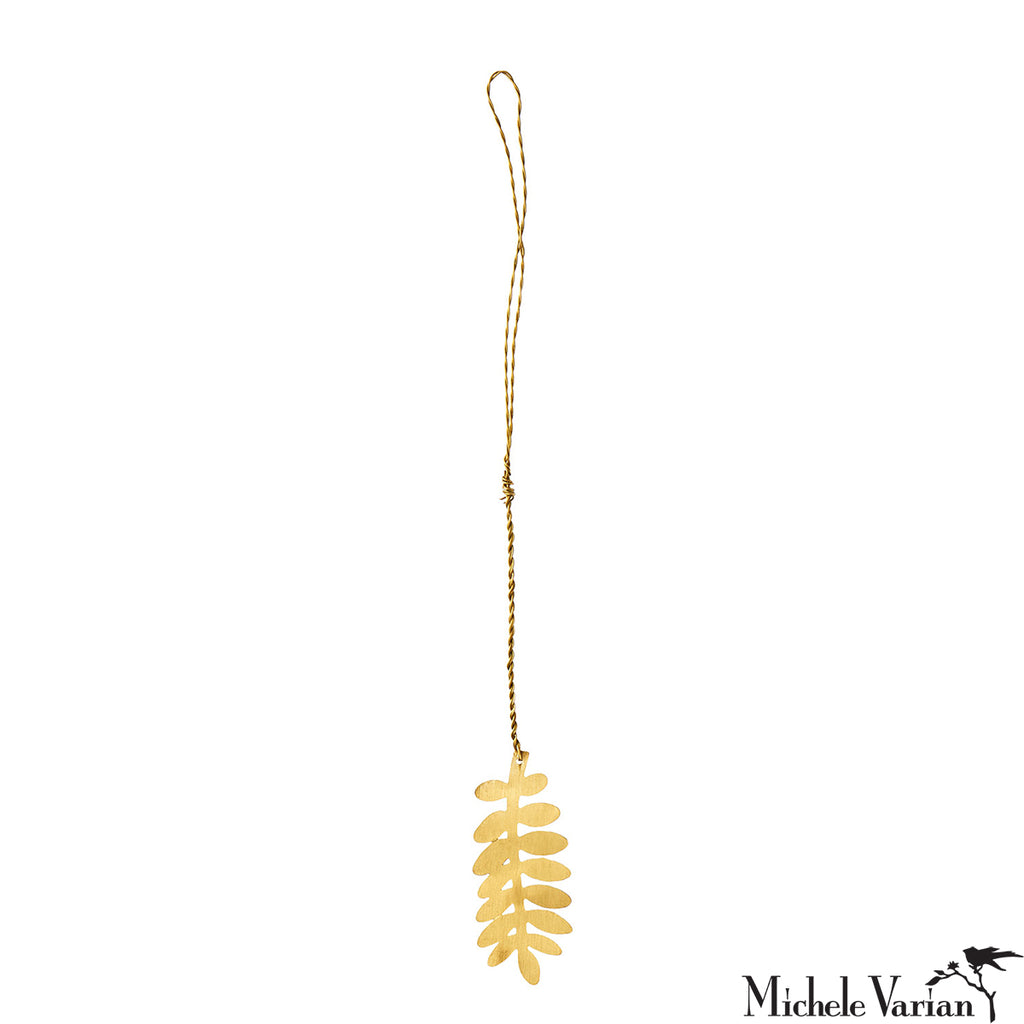 Brass leaf motif ornament with a flexible wire. Perfect for Christmas tree decorations or holiday gift wrapping decorations!