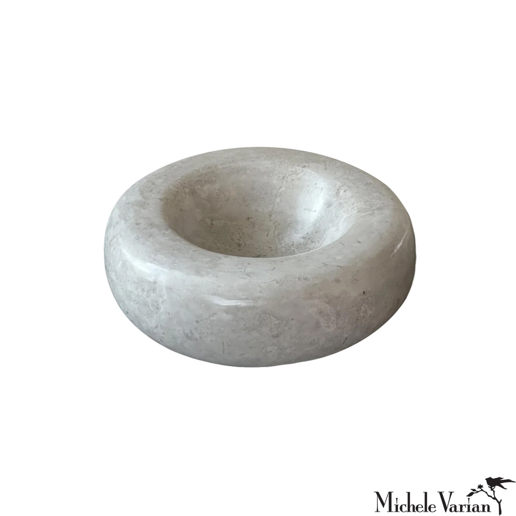 A limited production, functional object d'art. The Contour Bowl is a heavy set, six-inch round bowl cut from a single piece of solid marble, hand-finished by artisans in a growing stone atelier in Rajasthan, India.