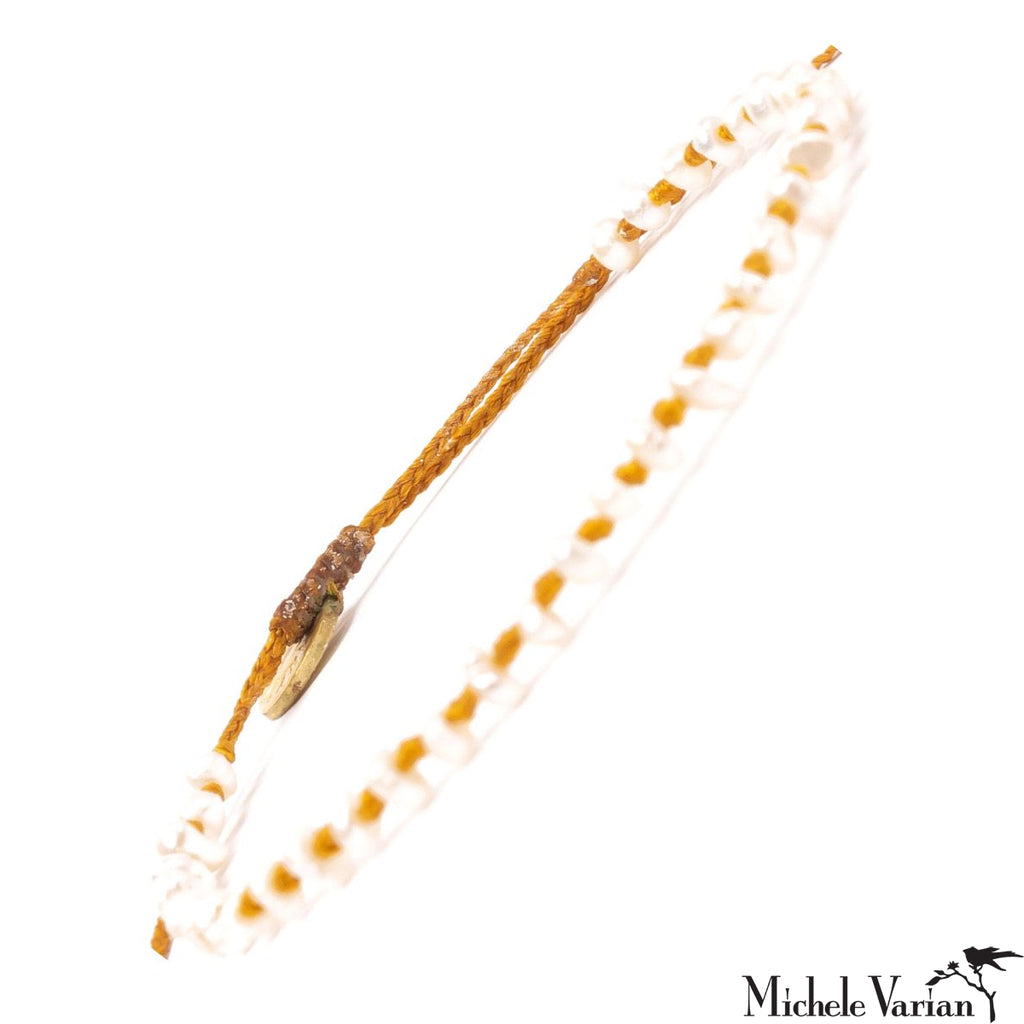 A bright and colorful accessory, with semiprecious gemstone beads that bring a sophisticated vibe to this bracelet. The pearl bracelet is hand woven by Colombian artisans using a handloom and finished with an adjustable closure and a medallion on which is inscribed our mantra: Be positive!