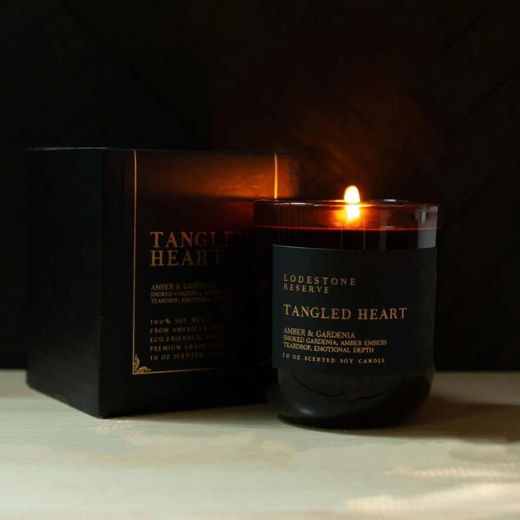 Velvety gardenia blooms curl through the air, their sweetness deepened by the warmth of smoldering amber embers. There’s a quiet ache here—teardrops in candlelight, beauty touched by emotional depth.