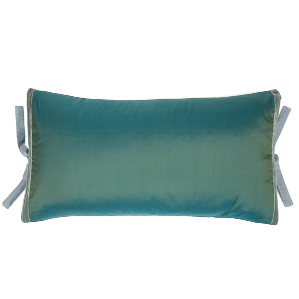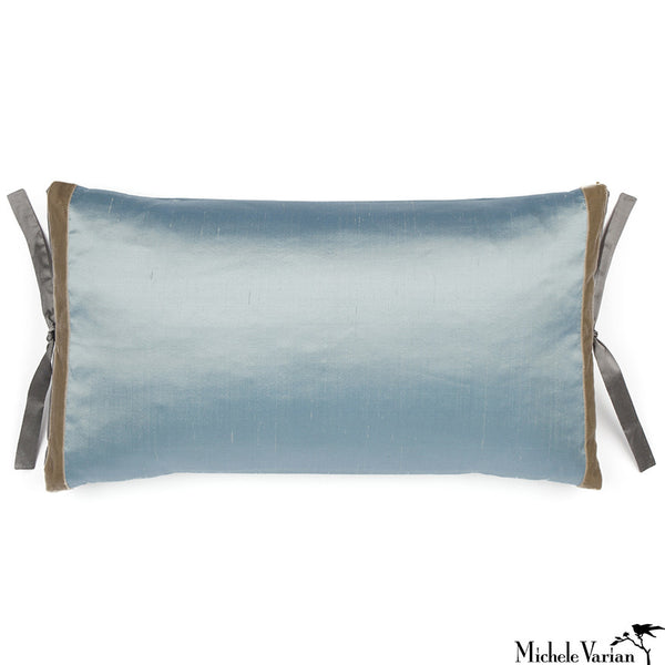 Luxury handmade decorative throw pillows made of natural fabrics, great for adding comfort and casual, laid-back style to a contemporary living room, bedroom or lounge. The modern printed graphics are from original watercolor paintings by Michele Varian. The cushion covers have a functional and decorative tie closure, and silk insert. The traditional knot tie closure at the top ensures that there are no hard elements like buttons or zippers. All pillows include a generously filled feather and down blend insert. This toss cushion is designed by Michele Varian and handcrafted in NYC.