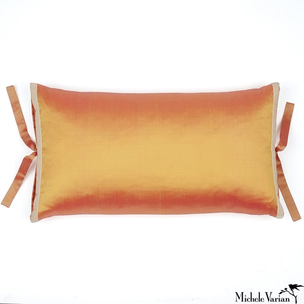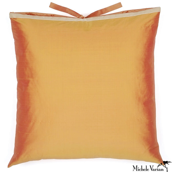 Luxury handmade decorative throw pillows made of natural fabrics, great for adding comfort and casual, laid-back style to a contemporary living room, bedroom or lounge. The modern printed graphics are from original watercolor paintings by Michele Varian. The cushion covers have a functional and decorative tie closure, and silk insert. The traditional knot tie closure at the top ensures that there are no hard elements like buttons or zippers. All pillows include a generously filled feather and down blend insert. This toss cushion is designed by Michele Varian and handcrafted in NYC.