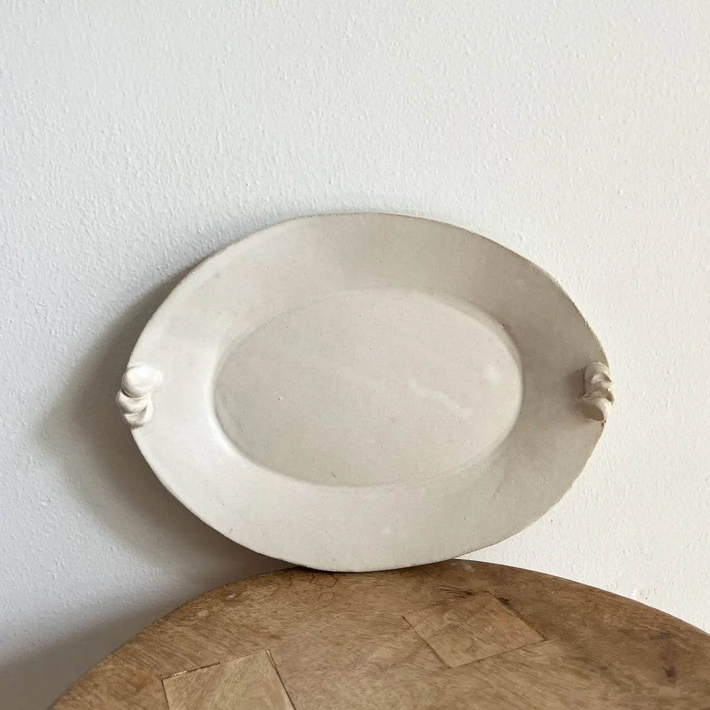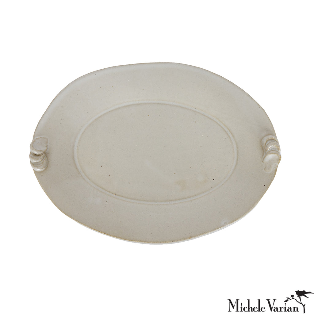 A classic platter with some handmade "splash" details on either end. Easily layers into almost any tablescape.