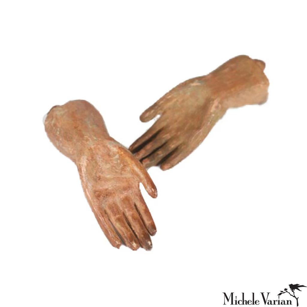Petite santos hands—charming decorative pieces that bring personality and playful intrigue to shelves, desks, and display spaces. These delightful little sculptures celebrate folk art tradition.
