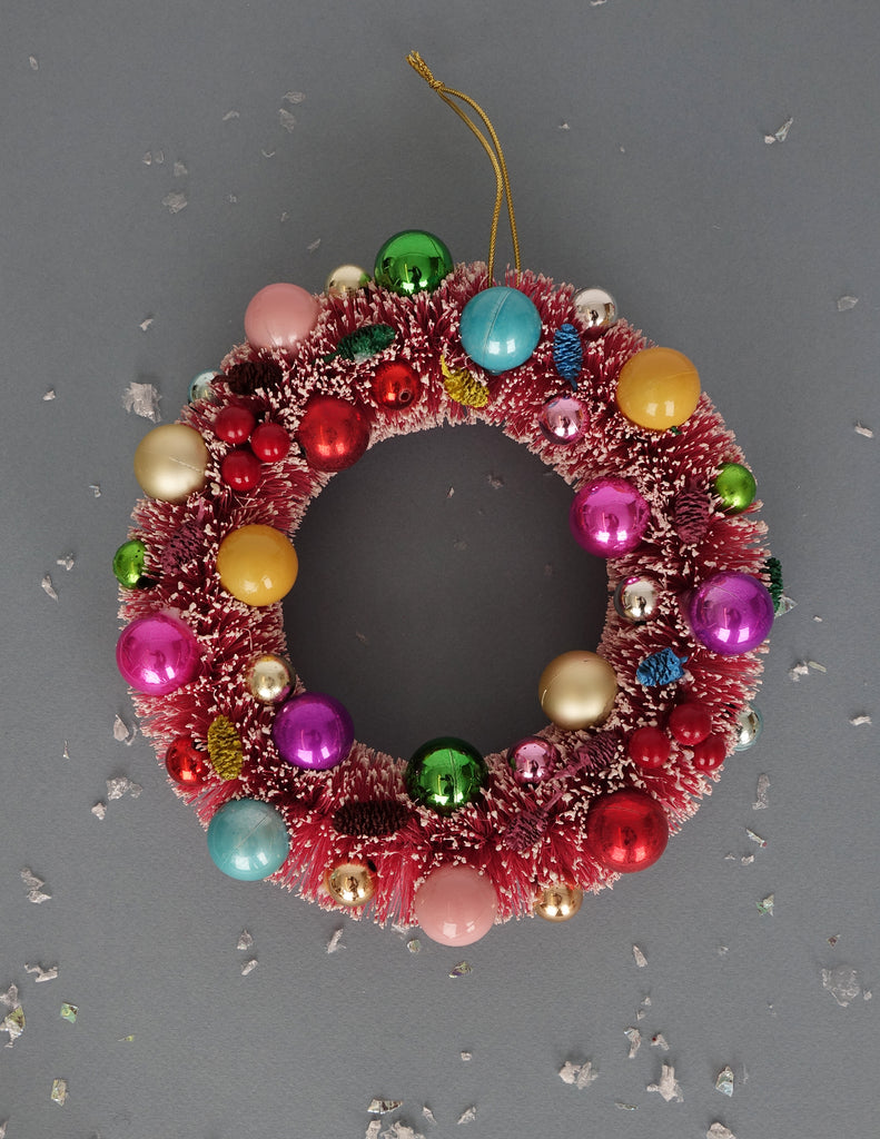 Bring festive cheer to your home with this vibrant Small Pink Decorated Wreath, bursting with rainbow-colored baubles that sparkle with holiday spirit. Perfect for adding a pop of joyful color to any doorway, wall, or mantelpiece, this playful wreath celebrates the season with whimsical flair. Each ornament catches the light beautifully, creating a dazzling display that spreads smiles and seasonal magic throughout your space.