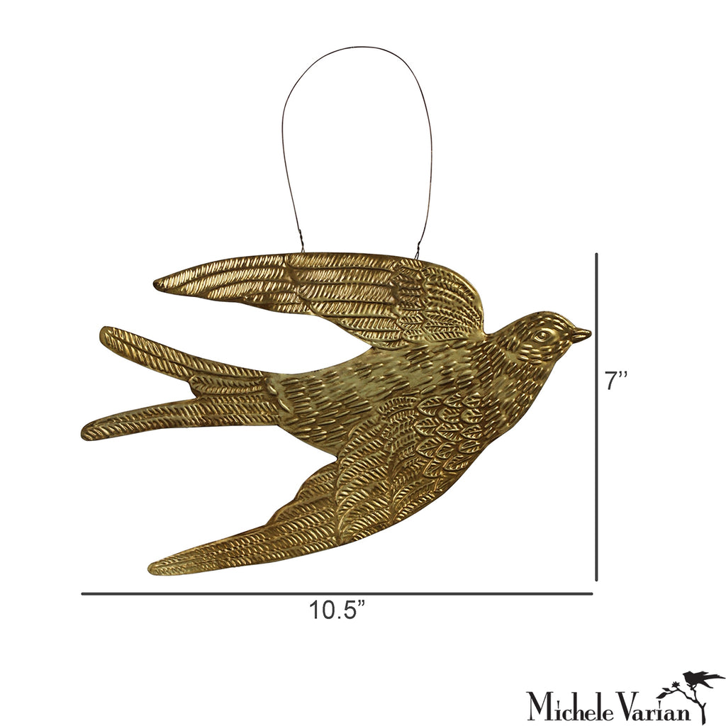 Pressed of metal and plated with brass, this large scale bird is a truly striking object. Strong details and deeply intrinsic meanings bring life into any space.