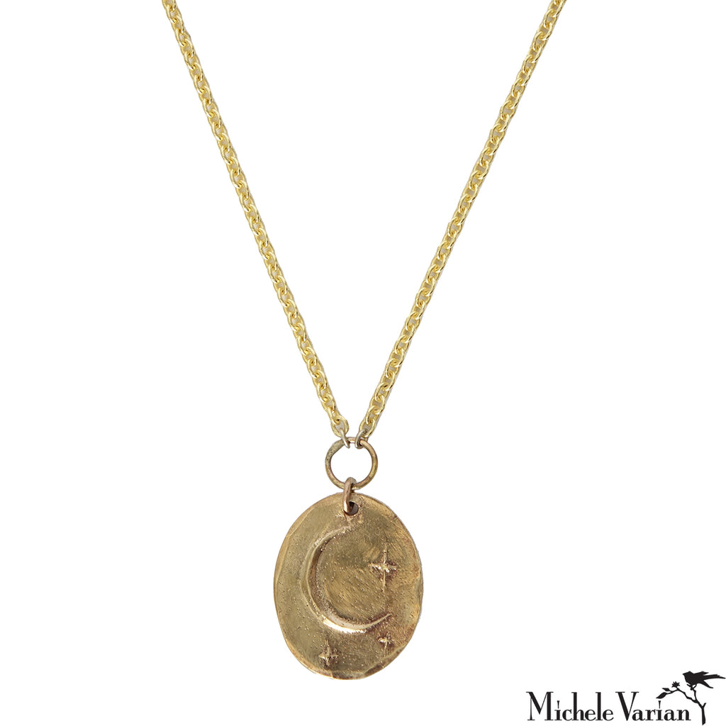 cast brass pendant with moon motif