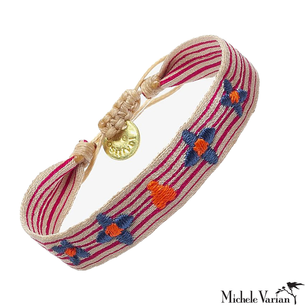 Friendship Bracelet Beige and Fuchsia Stripes no. 0001