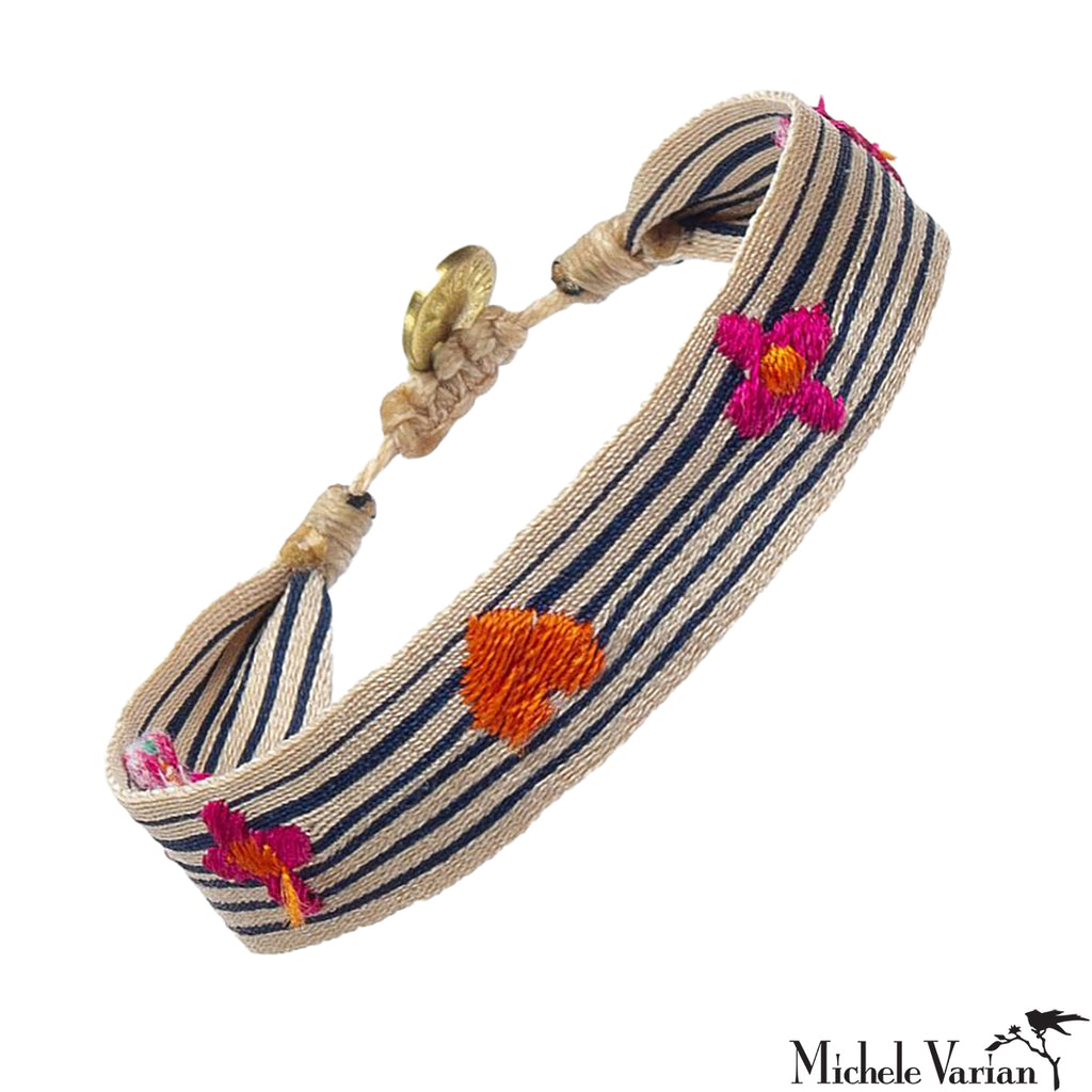 Friendship Bracelet Beige and Navy Stripes no. 0002
