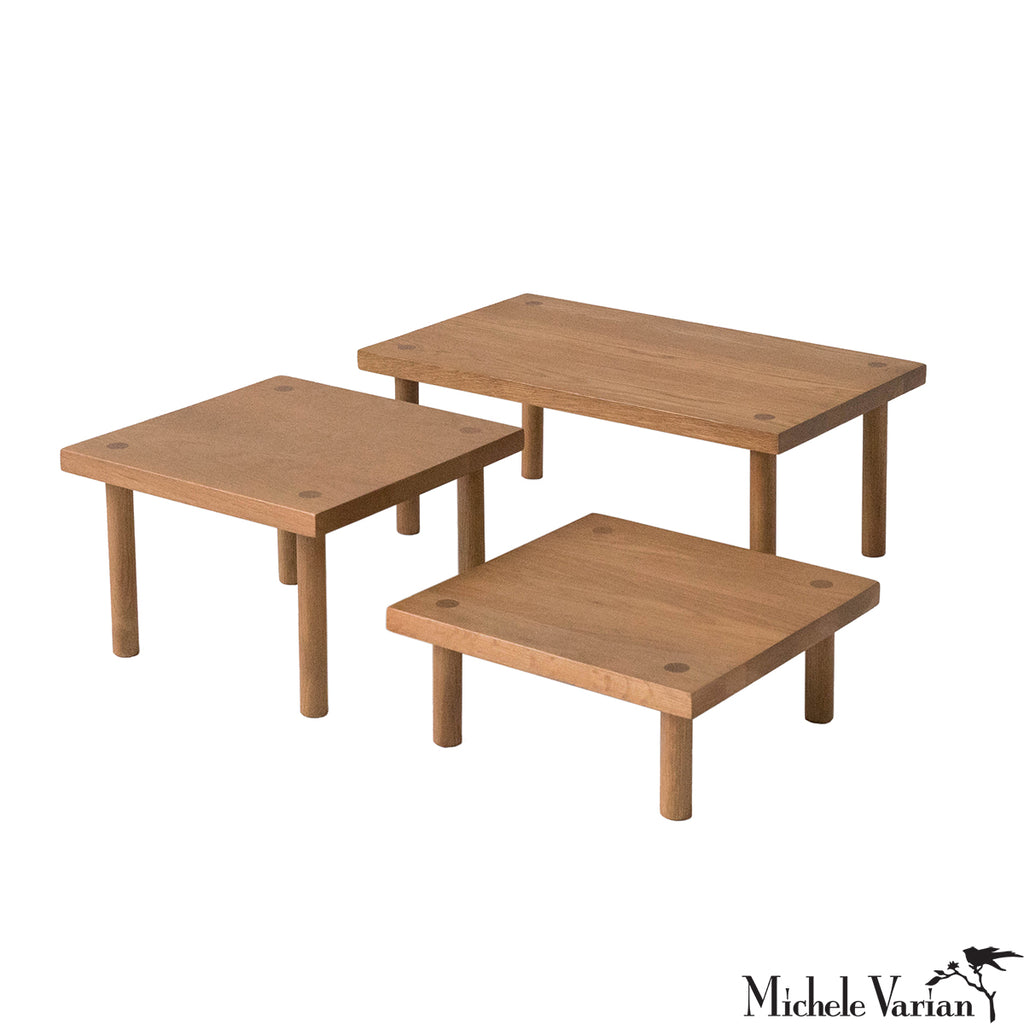 A simple, clean, and versatile stand. Can be used on the ground as a plant stand, on a shelf/desk for an additional storage level, or as a bedside table. Stack or nest them to build a custom surface.